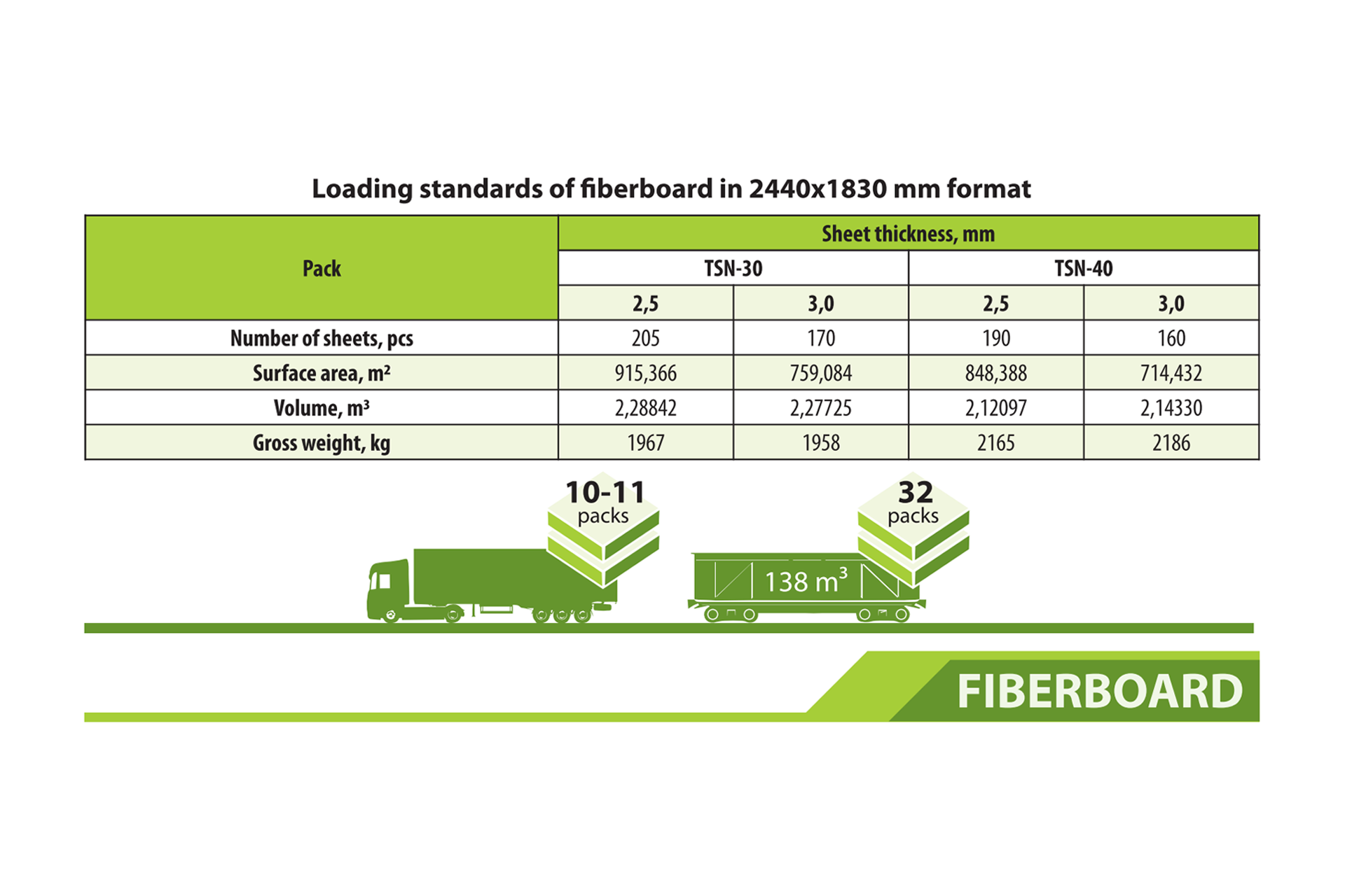 * Note: The continuous production method of fiberboard allows to make a board of any length and width up to 2500 mm.