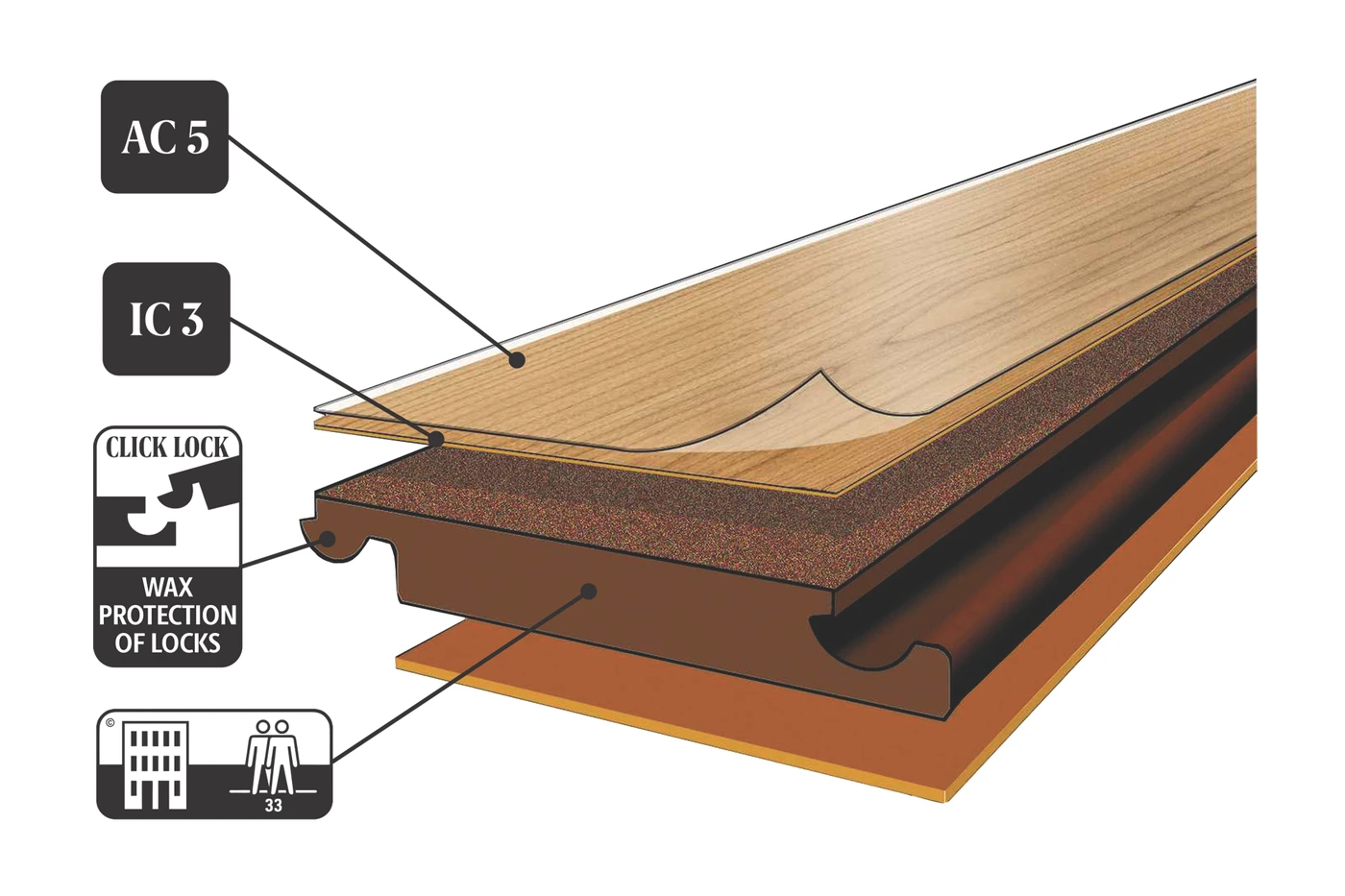 Our laminate is famous for its durability, the flooring is able to withstand considerable loads. It is possible to achieve such high strength due to the structure of the panels. They consist of four main layers:
