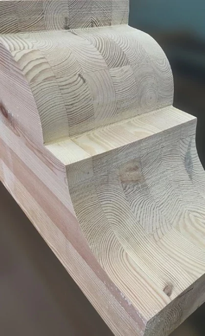 As per customer's preferences, it is possible to manufacture decorative elements from glued milled timber, which is a regular glued timber processed on a special miller machine. Such equipment allows for cutting various patterns, ornaments, moldings, and other decorative elements that can be used in interior or exterior finishing of your wooden house.