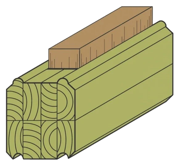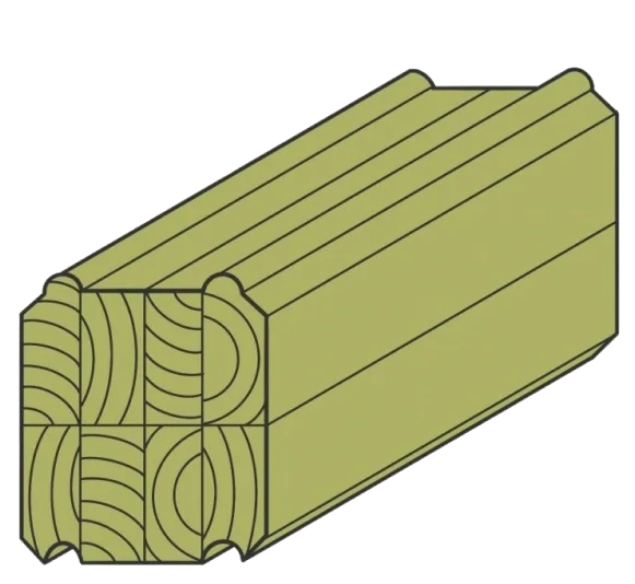 Thanks to the efforts of our partners' engineers, a fundamentally new type of glued timber has been developed for building wooden houses. This type of log combines the thermal technology of a frame house with the aesthetics of a solid glued timber. The innovation lies in the fact that there are special cavities inside the log that can be filled with insulation such as foam or other types of foam insulators. Due to the advanced technology, it is practically impossible to distinguish externally between a construction made of hollow logs and one made of solid glued timber, unlike construction according to the block-house technology.